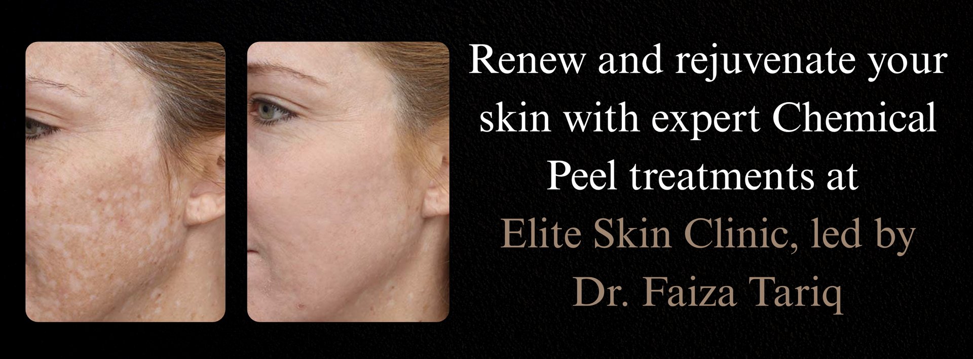 Reveal refreshed, radiant, and glowing skin with Chemical Peel at Elite Skin Clinic. Schedule your consultation with Dr. Faiza Tariq today!