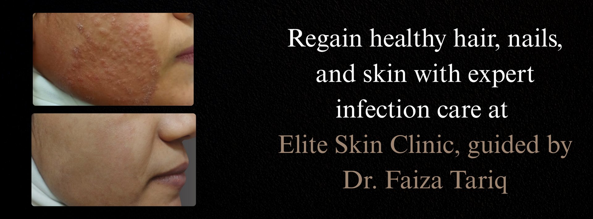 Struggling with itching, redness, dandruff, nail discoloration, or stubborn skin infections? At Elite Skin Clinic, Dr. Faiza Tariq (MBBS, FCPS – Dermatology) offers comprehensive treatment for all types of fungal, bacterial, and microbial infections affecting the hair, nails, and skin — ensuring fast, safe, and long-lasting relief.