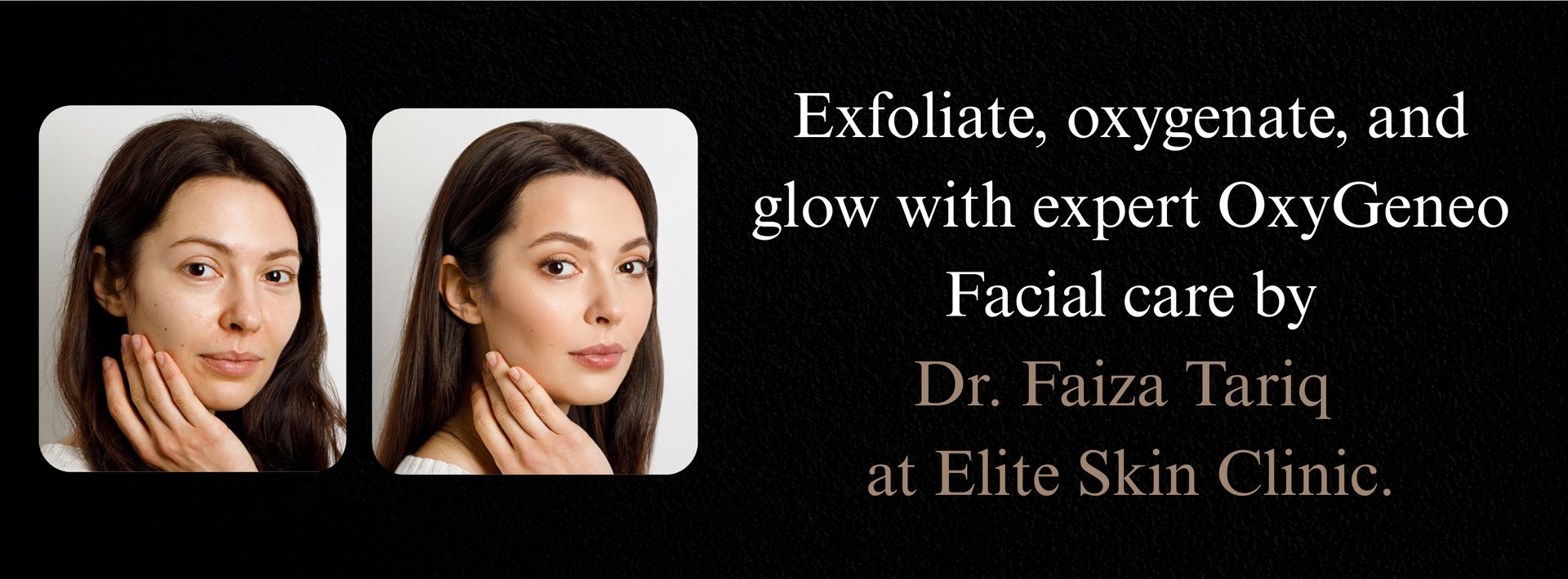 Experience brighter, healthier, and more radiant skin with OxyGeneo Facial at Elite Skin Clinic. Schedule your consultation with Dr. Faiza Tariq today!
